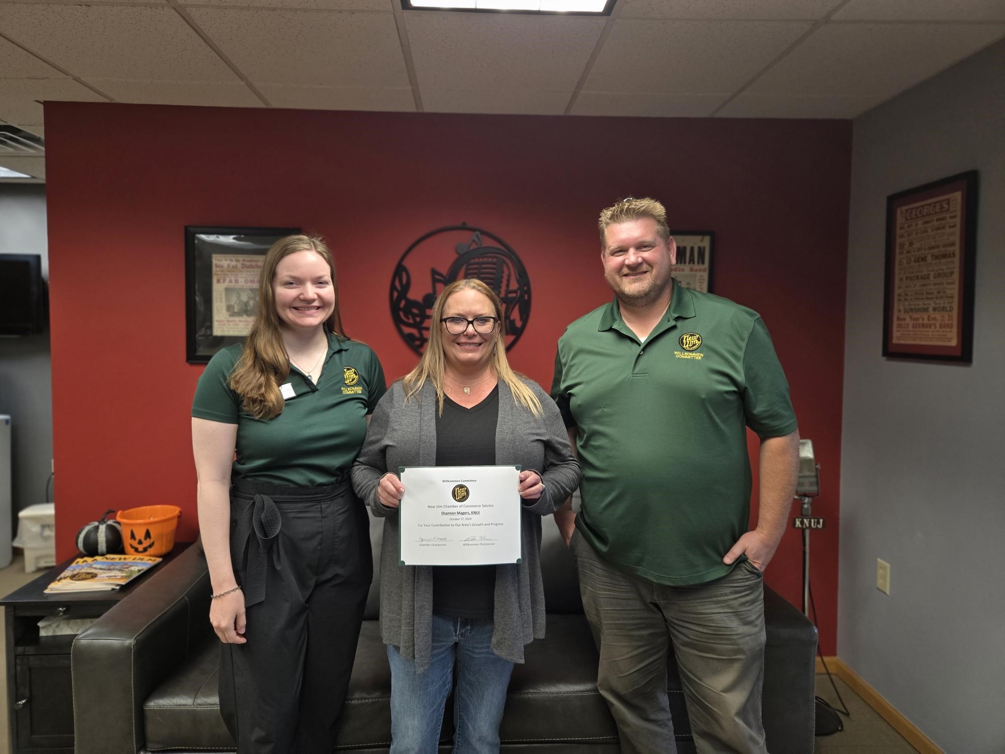 The Willkommen Committee recently visited KNUJ to welcome their new General Manager Shannon Magers. Shannon grew up in between Cambria and Judson, Minnesota. She started working at Three Eagles Communication in Mankato approximately 14 years ago, an accidental transition into her radio career. She began as a receptionist, became the office manager within a week, and went from there to regional business manager and then general manager. When she was offered the job at KNUJ, she said “yes” immediately as her and her husband spend so much of their time in New Ulm to begin with. The town “makes you feel like you’re at home,” according to Shannon. She is enjoying her new role as it gets her away from tons of paperwork and gives her the opportunity to actually go out and be in the community where she can meet the people of New Ulm and get to know the town better. Shannon has been at KNUJ since August of this year.