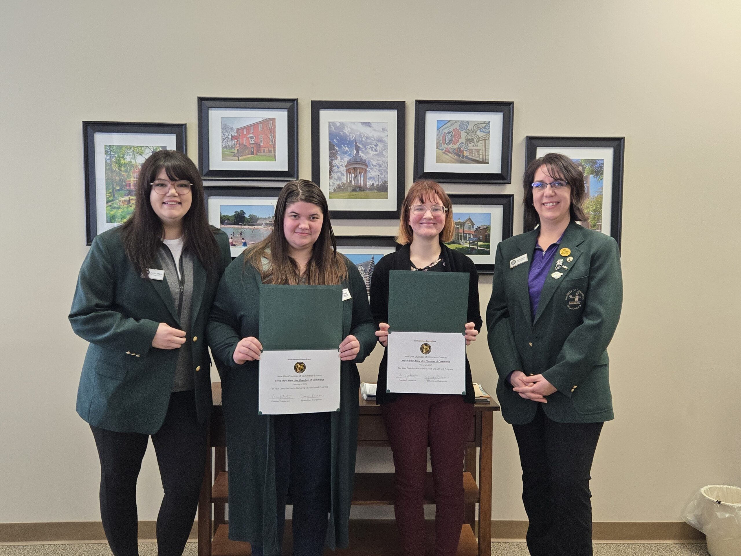 In the photo: Alyssa Birman, Vista Prairie at Ridgeway; Elyza Moy, Mae Geidel, New Ulm Chamber; Sarah Seifert, Citizens Bank Minnesota